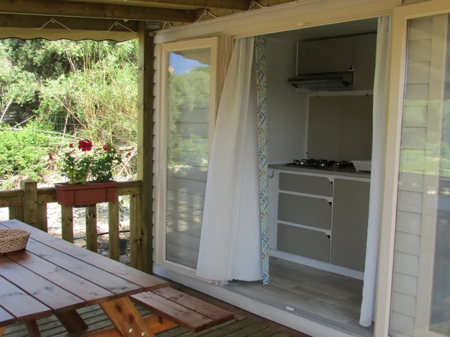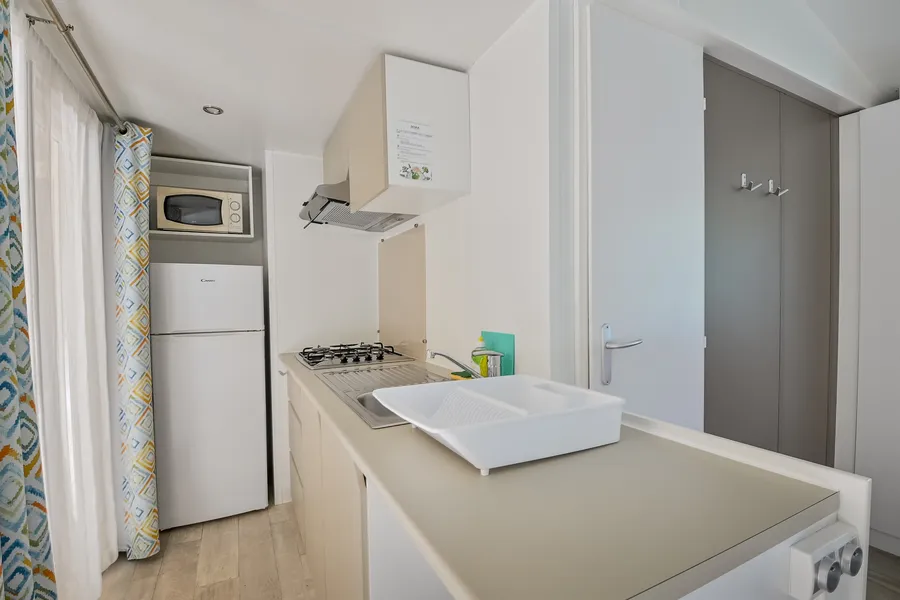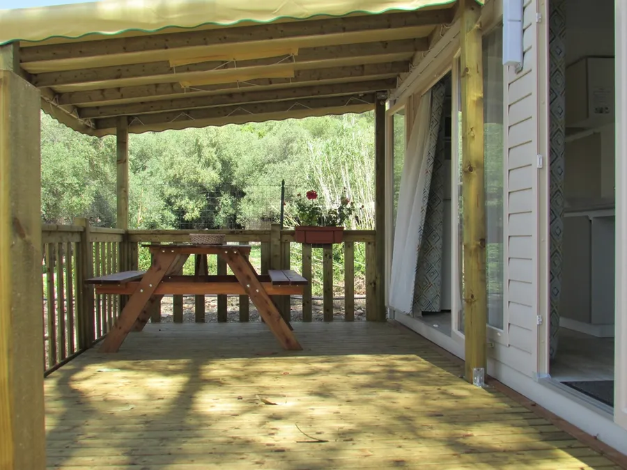 4 personnes Cette maison mobile de 26 m² offre tout le confort nécessaire pour des vacances en toute tranquillité. Elle dispose d’une terrasse de 12 m², partiellement couverte, idéale pour profiter des repas et des moments de détente en extérieur.