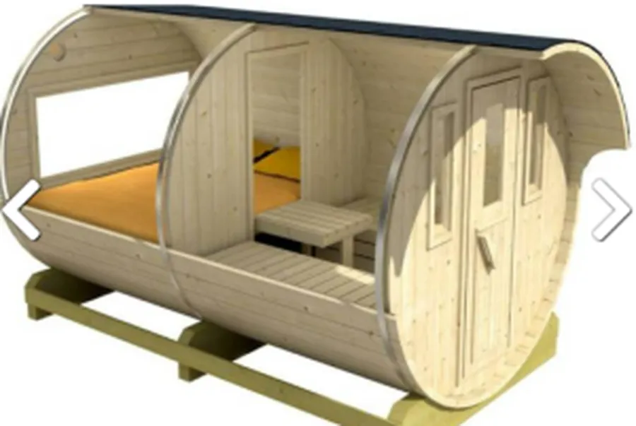 Le Tonneau est une cabane en bois de 8 m², idéale pour remplacer la tente tout en profitant d’un hébergement insolite et confortable.
